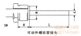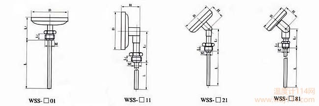 抽芯式雙金屬溫度計(jì)的外形尺寸: