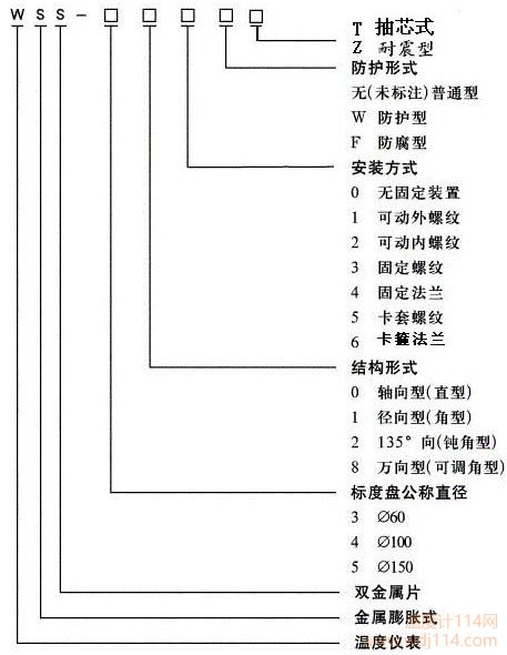 抽芯式雙金屬溫度計(jì)參數(shù)對(duì)照上表中的字母